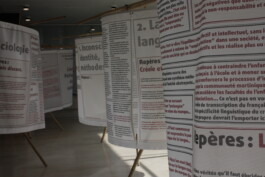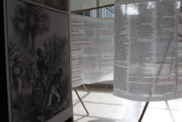 Du 25 avril au 10 mai 2019, la FMSH accueillait l'exposition Traces et paysages. Cette exposition proposait une réinterprétation typographique de l'essai d'Edouard Glissant, Le Discours Antillais.